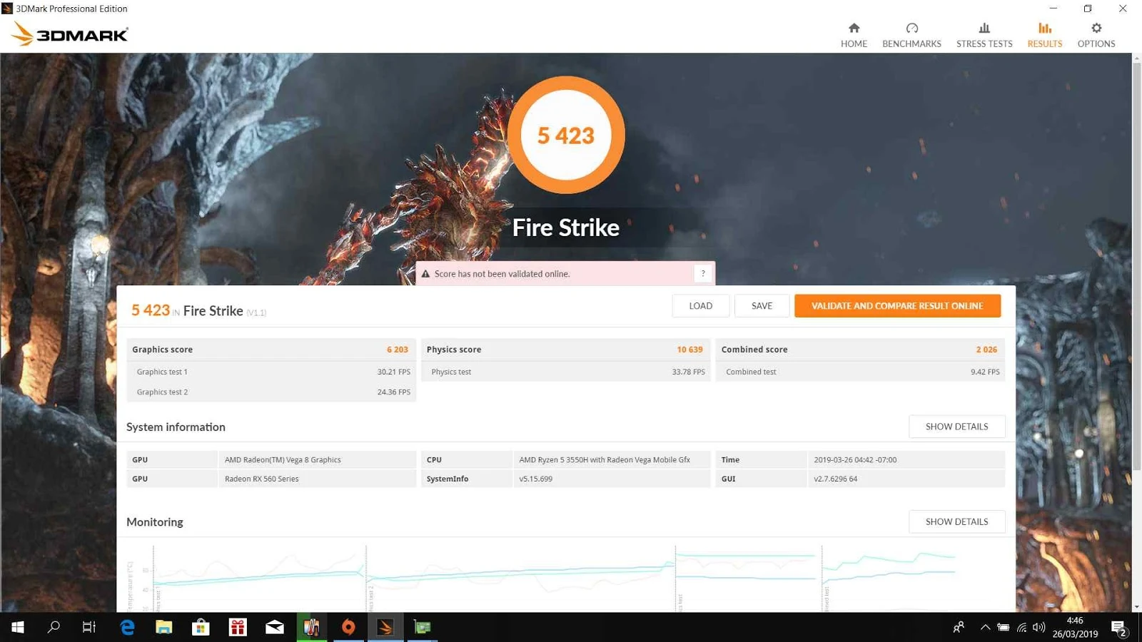 | Benchmark 3DMark Fire Strike Asus TUF Gaming FX505DY R5697T |